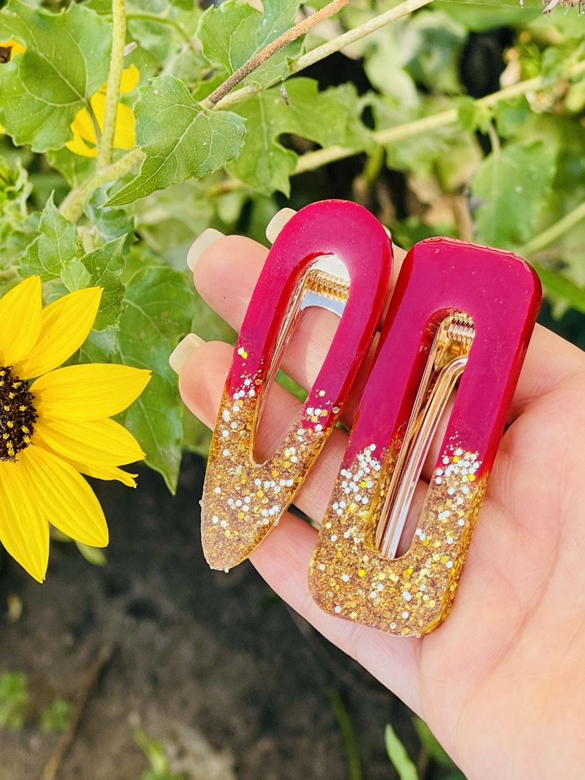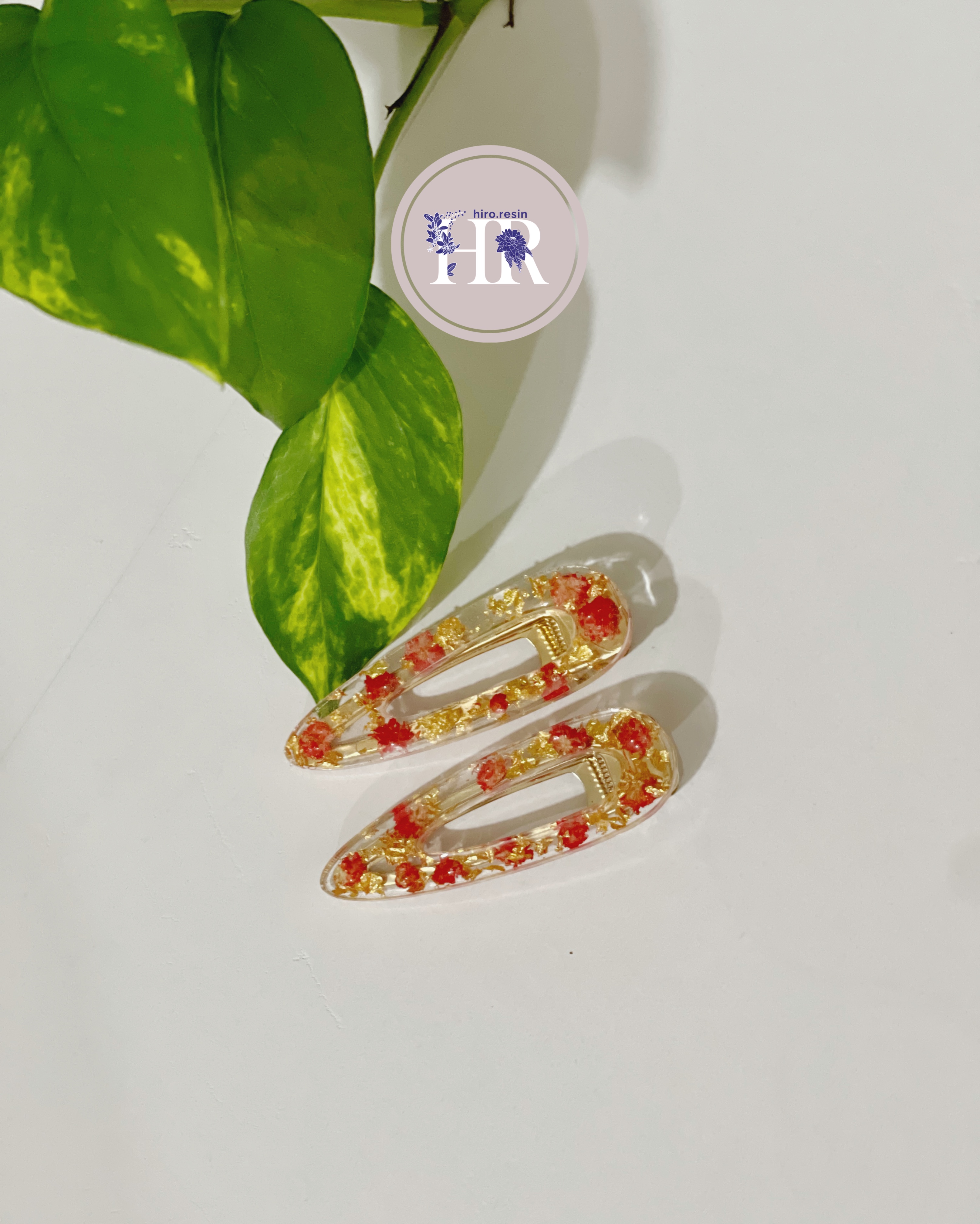 گیره سر ۲ عددی طرح قرمز طلایی رزین