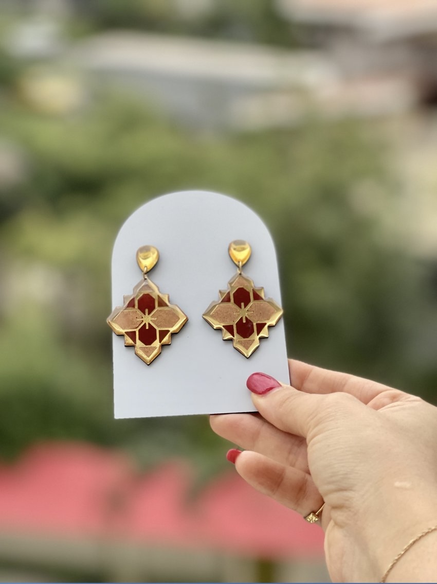 گوشواره طرح نقش جهان رزین