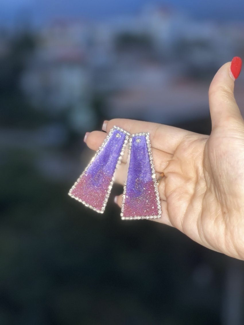 گوشواره طرح آمیتیست رزین